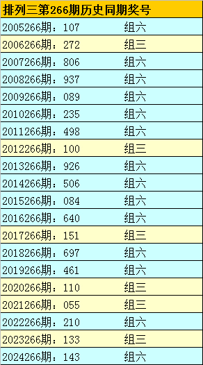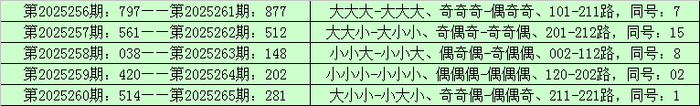 则,排列三第2025261期奖号:877,与排列三第2025266期奖号可能有相同的号码。且排列三第2025266期奖号大小比、奇偶比和012路比可以参考第2025261期奖号形态:大大大、偶奇奇和211路。